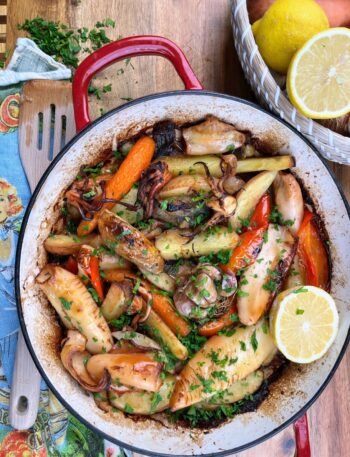 Confit squid with potatoes is a one-pot wonder. There are never any leftovers when I make it, especially with bread …
